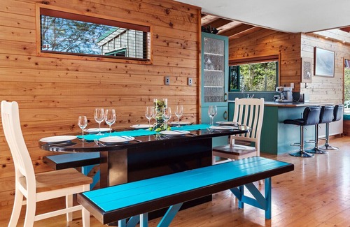 You can feel the love poured into this barn style home, which has been stylishly revamped and modernised. From the polished wood and high ceilings to the colour pops of teal and bottle green throughout, The Lakeview Chalet is a magical find.