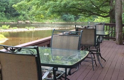The Landing has 420 feet of Private River Access. This is perfect for the fisherman or those thrill-seekers who want to float on the river in a tube, kayak or canoe. The expansive yard on both sides of the house have hammock locations got guests to enjoy the sounds of the river while relaxing. Cook on the back deck with the outdoor grill. Enjoy dinner along the river while watching Eagle, Kingfishers and waterfowl.