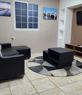 Providing a garden, The Layover - 6 mins from the airport, Fully equipped for short and long stays features accommodations in Kelly Village. Private parking is available on site at this recently renovated property. The accommodation offers a 24-hour front desk, full-day security, and currency exchange for guests. With free Wifi, this 2-bedroom apartment provides a flat-screen TV, a washing machine, and a fully equipped kitchen with an oven and microwave. Towels and bed linen are featured in the apartment. For added privacy, the accommodation features a private entrance. A car rental service is available at the apartment. Piarco Airport is 0.6 miles away.