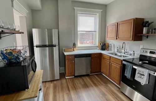 Welcome to the Lazy Loft – your central retreat in WV! This unit offers off-street parking, central air, cable TV, and Wi-Fi. Located in the heart of Martinsburg, it's within easy walking distance to restaurants and shops. A short drive takes you to the Appalachian Trail, Harpers Ferry, Shepherdstown, and Antietam National Battlefield. Enjoy two bedrooms, a well-appointed bath, a fully equipped kitchen, and a cozy living room. Book now for a comfortable and convenient stay in Martinsburg!