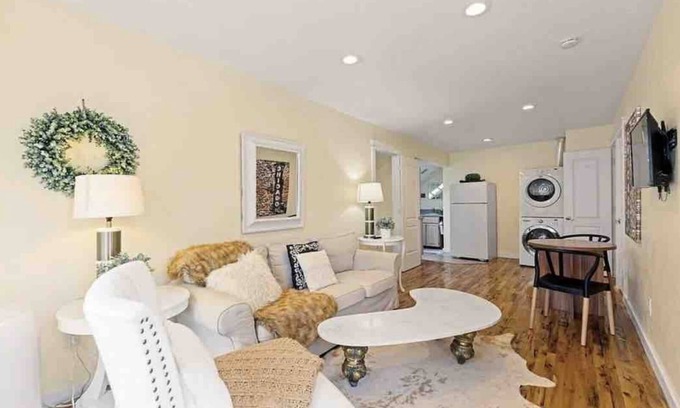 A Gorgeous, One Bedroom Apartment Nestled in a Quiet, Lovely Neighborhood. The Apartment has a great sitting area, dining area, a kitchenette, a bathroom with a shower, and also a washer and dryer. It also has a balcony to enjoy the outdoors too!