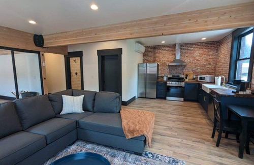 Unit 3 of 4. Renovated brick lofts located in historic downtown Wallace, ID at the Camia Building, built in 1913. Walking distance to restaurants, bars, & shops. Lofts are spacious, clean, and upscale. Features open floor plans with full kitchens, spacious bathrooms with dual-head walk-in showers, living area with fireplace, & flat screen TV with streaming services. The loft is a prefect retreat for couples or a solo traveler. 15 minutes to Silver Mountain & Lookout Pass Ski resorts.