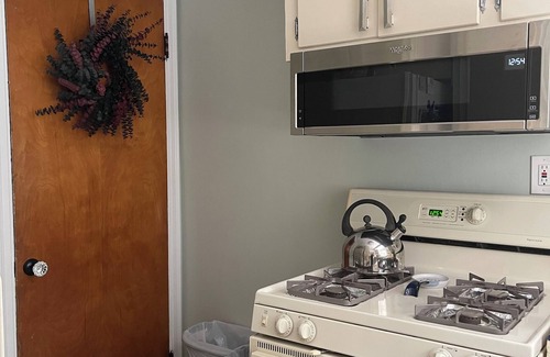 Clean dry basement located off the kitchen has two extra high back chairs, full sized washer and dryer for all your laundry needs during your stay. Guests provide their own laundry soap. I will provide you with one wash for your convenience.