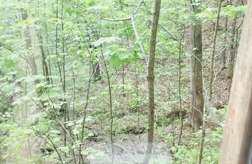 We are a 5 acre homestead surrounded by woods at the very back of a hollar. The Little Lodge and our other 2 listings share share our 5 acres but spread apart, and each separated by hills. We are slightly visible to you from the back side of your cabin (which nothing of use to you is on). Still very secluded, and private for our guests stay.