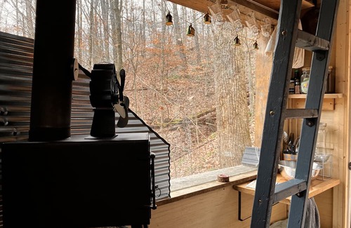 Amongst a minimalistic stocked kitchen (see amenities list) it includes a one burner butane stove (butane NOT provided), french press, and wood stove to cook on. We offer a collection of teas, and coffees, for you to enjoy. Bring your own drinking water, and ice. We provide a cooler indoors!