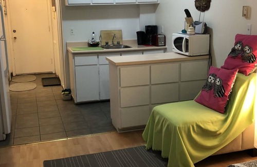 Cozy studio, fully equipped, spacious, designed for your comfort. This inviting space features a large open concept, with a comfortable bed, ensuring a peaceful night's rest. A dining area, a lounge area, a full kitchen with everything you need to cook like at home, separated by an island. A bathroom with shower and bathtub as well as towels and everything you need.