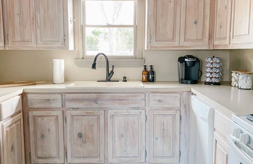 The kitchen is ready and equipped with the basic cooking utensils you may need: cookware, dinnerware, eating utensils, wine glasses and bottle openers. The Live Oak also offers a Keurig coffee maker and plenty of K-Cups, as well as creamer and sugar.