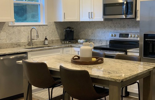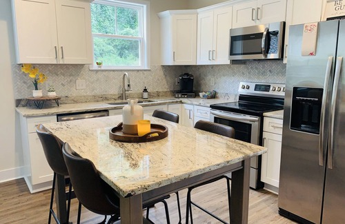 Beautiful new bungalow in the heart of downtown Easley. Walking distance to downtown restaurants and bars. 3 bedrooms, 2 bath. Beautifully landscaped yard with privacy fence. Enjoy the patio with friends or family. The Doodle trail is 1 mile from the front porch where you can ride a bike, run or take a leisurely walk. Centrally located between Clemson and downtown Greenville. 25 min ride to Lake Hartwell. Great for a family getaway or a fun girls weekend.