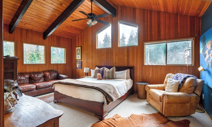 Welcome to Highland Farms, an enchanting forest farm nestled at the base of the majestic Mount Hood in Oregon! The Lodge can sleep up to 8 guests!