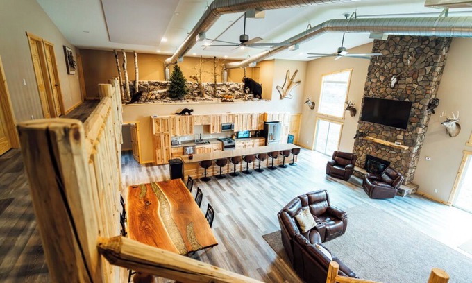 The Lodge was designed for hosting groups. We have a large 40x40 common room with 26ft kitchen island, custom furniture throughout for large groups and it works fantastic for gatherings.