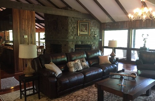 Residence offers cherry flooring on the main level with mahogany interior siding, large eat in kitchen, large formal dining area, large bar, pool table, two stone fireplaces and exercise room all on the main level. The terrace level offers 4 bedrooms (2 King Master Suites - w/TV and private baths including deep soaking tubs, 1 Queen w/TV , 2 Queens) 1 bath, laundry room and family room with stone fireplace, perfect for a nice private spot to read or enjoy intimate conversation.