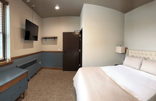 The Lodge Luxury Suites was built in the historic 381 Elks Lodge. Keeping true to the Elks' purpose to serve community and country, The Lodge offers a large area of shared space with a fireplace and the original horseshoe bar, encouraging guests to gather in a self-serving atmosphere. Guests can also enjoy the outdoor common area where you can grill and take in the view or simply relax in our beautiful sauna area. ( A great Finnish tradition)