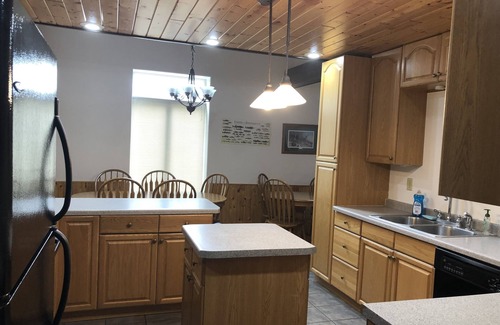This unit sleeps up to 24 people. There is a private boat launch and dock access. This unit has a patio with picnic tables and a grill. There is also a fire pit in the back yard. This unit has 6 bedrooms and 2.5 bathrooms. It is located on the snowmobile trail as well, and located within walking distance to great entertainment. Rent this unit for family events, reunions, girls weekend, fishing trips, snowmobiling trips, or just to relax!