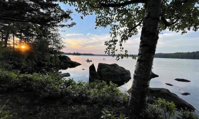 The Loft at Loon Sound is nestled among tall pines and offers a serene waterfront getaway, with a private patio and outdoor gas firepit. Enjoy your vacation in a newly renovated, expansive space, enveloped in the charming warmth of a completely pine interior, with water views out every window. The path that extends from the patio leads to a dock, which is a perfect spot to watch the stars at night or listen to the loons.