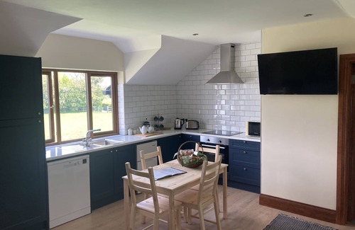 The Loft is a bright modern south-facing one-bedroom apartment, backing onto fields and forest on a working farm. It has a fully fitted kitchen and a king-sized bedroom. It has every modern amenity for your comfort.