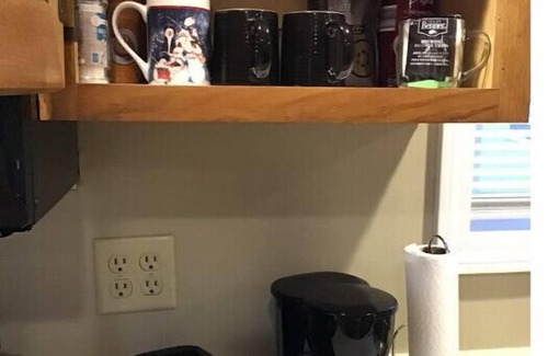 Cozy & quaint space In this studio with New Queen size bed, fully appointed Kitchenette Refrigerator, hotplate, electric skillet, crock pot, microwave, coffee pot, toaster, pots & pans, dishes, glasses, utensils, silverware, Soft towels, wash cloths, shampoo & body wash. Everything you need for a cozy comfortable stay.