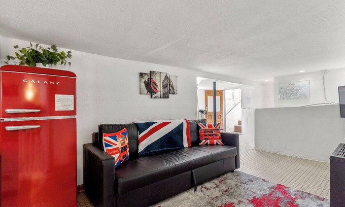 Though inspired by the 'London Underground', you're not confined here. Our expansive living area, bathed in comforting, ambient light, serves dual purposes—offering relaxation and a dedicated work corner. The pull-out couch easily transforms into a cozy queen bed, sleeping two with utmost comfort. As for culinary delights, the fully-equipped kitchen awaits your touch and the 3/4 bath ensures all your refreshment needs are met.