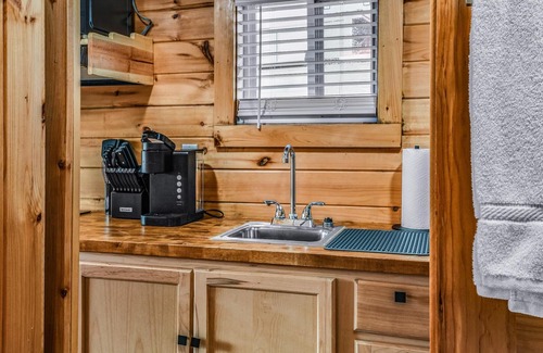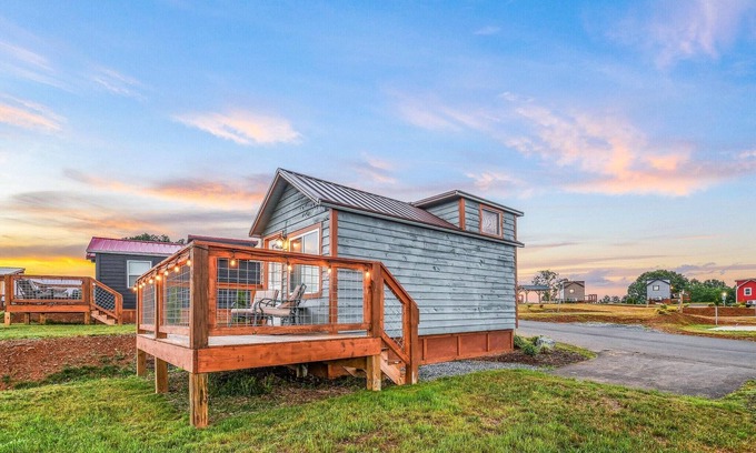 Our cozy 20-foot tiny home features a lofted queen bed, a fully equipped kitchenette, and a bathroom & walk-in shower with a barn door for privacy — all arranged to maximize space without sacrificing coziness. With mountain views and thoughtful details, these tiny homes offer a distinctive blend of simplicity and comfort, making every stay truly memorable. Plus, we know you love your pet and allow it, with just a $50 fee!