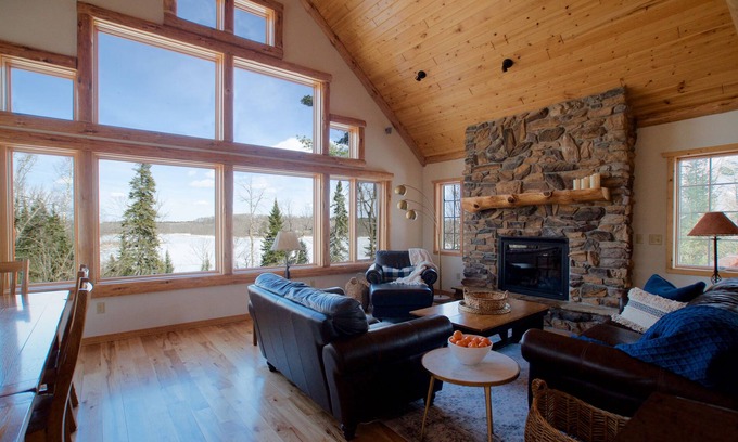 + Vaulted ceilings in the main living area & a wall of glass windows overlooking beautiful Baby Lake. Gas fireplace.