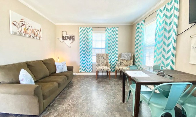 Welcome to The Lorena Ranchette! This 2 bedroom 1 bathroom cottage is located on our personal 1+ acre homestead farm. The vacation cottage will offer beautiful views, scenery, atmosphere, and of course the goats! Enjoy smores around the fire pit, hang out in the hammock and watch the goats, and escape the hustle and bustle of the city! Roku TV in living area and 5G internet!