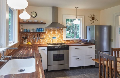 A fresh remodel blends the original charm of this 1920's bungalow with the comfort and convenience of modern living. Enjoy cooking or dining in the brand-new, fully-stocked kitchen overlooking the back yard: stainless steel appliances, gas cook top, convection oven, microwave, drip coffee maker, pots, pans, dishes, utensils.