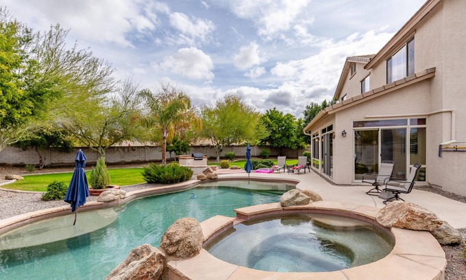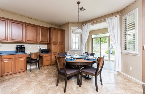 The exquisite backyard patio surrounds the home's inviting outdoor salt-water pool and spa, providing guests an oasis in the desert. The patio also includes furniture and a professional gas grill. Wanting to relax outside and enjoy the crystal clear night sky? Or do you want to enjoy the pool with the family? The Magic on Midway features several different places to sit comfortably outside, from the dining table to adjustable sunbathing seats, it's not if you will relax, just a matter of where. The Magic on Midway is also situated fifteen-thirty minutes from different spring training facilities, also just a short distance away from shopping and dining!