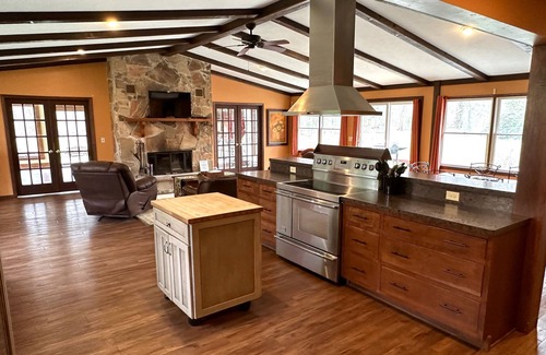 Enjoy a quiet and relaxing stay in our spacious and newly renovated Main House at Rustic River Retreats, a private 27 acre estate on the Grand River! The Main House features a beautiful brand new custom built cherry kitchen, warm and cozy great room with fireplace, and also a 24' x 30' Event Room - perfect for hosting intimate dinner parties, showers or corporate retreats.