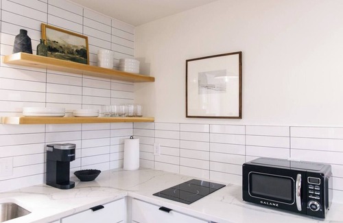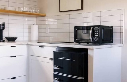 This fully renovated boutique motel and tiny homes are conveniently located in Chambersburg, PA just off I81 and Rt 30. The details of this space will not disappoint for any length of stay! This unit includes a queen size bed, well stocked kitchenette and thoughtfully designed bathroom with a fully tiled shower and rainfall shower head to give a luxurious experience. Outdoor community space with fire pit, dining, and yard games coming soon. Included is an on site coin laundry for your convenience.
