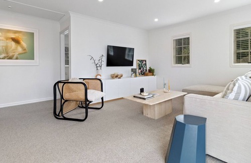 Bright, airy, and inviting, the furnishings at this multi-level holiday home have been carefully curated to create a perfect blend of luxury and practicality throughout. Enjoying fabulous indoor-outdoor flow, head outside to enjoy a freshly brewly morning coffee under the sunlit gazebo, surrounded by beautifully manicured gardens and the hum of birds, bees and rolling waves.