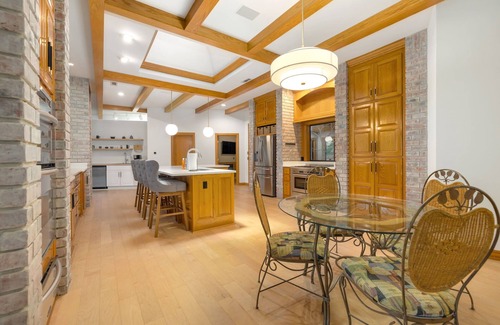 Experience luxury at The Manor! This huge home offers endless options for fun and relaxation. Swim in the indoor pool, have a drink in the swanky speak easy, play video games or billiards, hang out on the wrap around patio, or relax in the sauna and steam shower! Perfect for family gatherings - our spacious living room, fully stocked kitchen, and dining spaces can bring everyone together. Our home is tucked away into a tree-filled yard while also only being 4 miles to Downtown Bentonville, the best of both worlds!