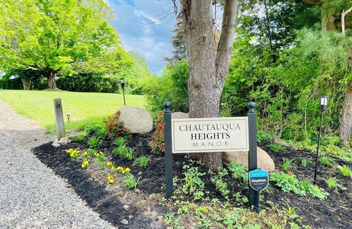 Historic Chautauqua Heights Manor offers a variety of luxury accommodations and sits on a private 15-acre estate located in the heart of CHQ County in Western NY, just minutes from the CHQ Lake & CHQ Institution. Whether you are looking to enjoy quiet solitude of an upscale lake retreat with friends or family, host an elegant wedding or shower, or plan a corporate retreat, The Manor is designed for year round enjoyment. This delightful property offers plenty of space for guests to relax and unwind with 11 formal bedrooms, 9 bathrooms with two beds and one bath tucked away in our cellar apartment that is a great In-law suite. There are 4 kitchens, 3 large dining rooms, many living rooms, two porches, expansive lawns, a fire pit, and an in-ground pool behind our English garden hedges (seasonly June-Oct). Enjoy the convenience of upscale decor, luxury linens, designer touches, WiFi, hair dryers, and other essential amenities during your stay. We hope you'll enjoy your stay at our estate.