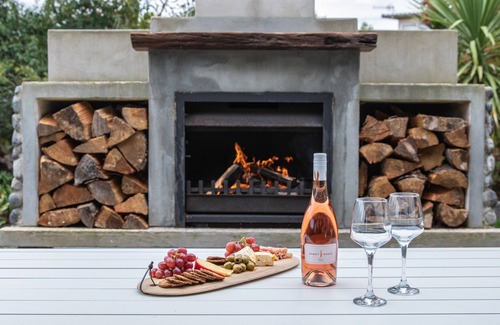 -Large outdoor entertaining area with covered BBQ, outdoor fireplace, heater and large table