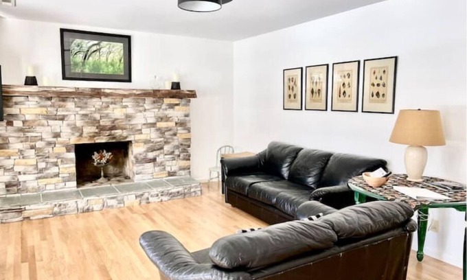 The home also offers a private driveway for parking and a 2 car attached garage that is available for guest use. The entire garage is available. We offer WiFi and 2 Smart TVs to access all of your streaming needs.