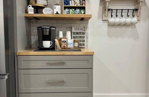During your stay, enjoy access to shared amenities, including a fully stocked kitchen equipped with a refrigerator, oven, microwave, air fryer, toaster, blender, and griddle—perfect for preparing meals or snacks. Start your morning with a cup of coffee or tea from the shared coffee bar, or unwind in the cozy sitting area designed for reading, conversation, or relaxation.