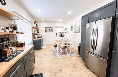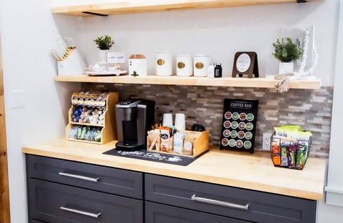 During your stay, enjoy access to shared amenities, including a fully stocked coffee and tea bar and a convenient mini kitchen with a refrigerator, microwave, air fryer, toaster, and electric griddle—ideal for preparing light meals or snacks. The cozy sitting area invites you to unwind with a good book or a refreshing drink after a day of adventure.