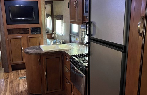 Stay comfortable while enjoying the outdoors at River Run Retreat! The Mark Twain 2-bedroom, 1 full bath camper with a 3+ acre waterfront campground with a private dock. With 1 queen bed and 1 bunk bed, guests will have plenty of space to relax. Enjoy AC, WiFi, TV and central ac & heating during your stay. Our fabulous place will help you feel at home while you're exploring Central KY. You will love the fire pit / grill combo , picnic table. Enjoy fishing , swimming , kayaking , in the Kentucky River. We have two john boats available to rent in addition to your camper. Huge open field for baseball, football, volley ball, cornhole whatever you like. Plenty of mature trees for just hanging out , sun loungers for laying out and taking in the sun, out door dining areas, play sets for the little ones,