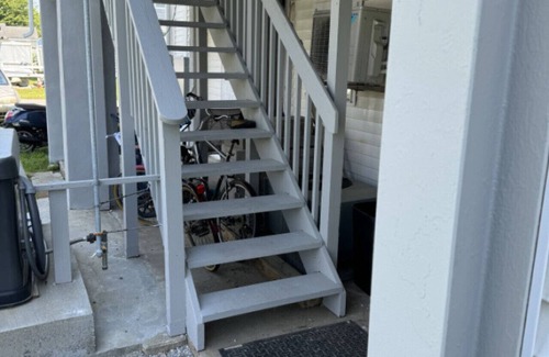 This 2nd floor location is ideally situated with a queen memory foam bed, kitchenette w/ 55" TV, reading lamp and AC. Walk 1 block south and you are at the beach!