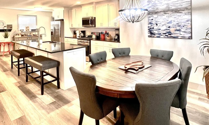Luxurious beds and has plenty of space to spread out with 4 bedrooms, 2 bathrooms, 3 smart TV’s. WiFi access. Fenced yard.