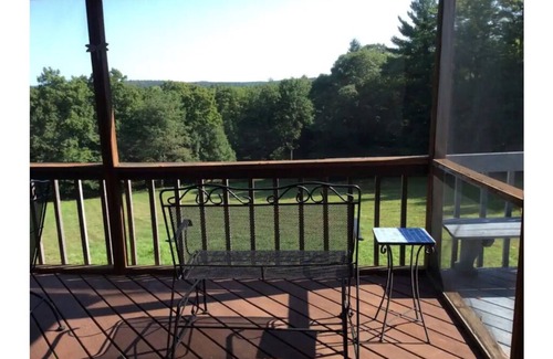 Relax in a beautiful mountain setting at this 4-season ski house within walking distance of the slopes at Otis Ridge Ski Area (the best ski area south of the Vermont border). In fact, the back-yard (actually a meadow full of wildlife and flowers) used to be part of the ski area and there are still remnants of the rope-tow on the edge of the property. The long-range views off the back porch are fantastic.