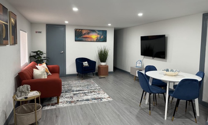 This 2-bedroom, 1-bathroom rental features a BBQ grill and air conditioning. Connect to the WiFi, or get cozy in front of the Smart TV. Bathroom amenities include a hair dryer, towels, and toilet paper. And you can even pack a bit lighter because there's a washer and dryer. Other amenities include bed sheets, an ironing board, and heating.