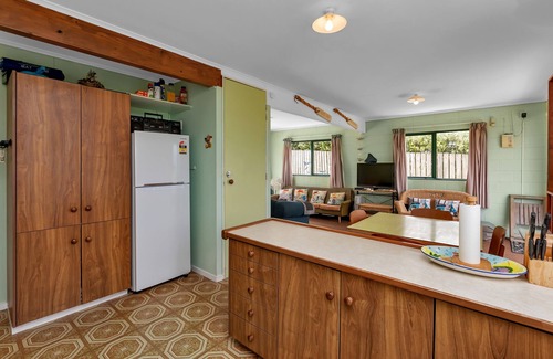 Wake up to the morning sun on the spacious deck while savouring your first cuppa, surrounded by the beauty of Kiwi paradise. complete with lovely views over Doubtless Bay and Puheke Mount, you'll be witness to amazing sunsets. The large lawn is perfect for games and adds to the charm of this coastal retreat.