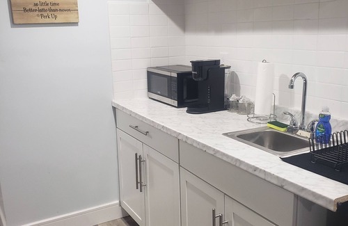 Welcome to The Micro-Suite at Eden Park! A tiny tiny guest suite basement apartment at The Eden park bnb in Cranston RI. This mini suite is equipped with 1 full bathroom with a stand alone shower. Small kitchette area, and one small bedroom with full size bed, high speed internet, and smart tv. Private entrance. This is a basement guest suite. There are a total of 3 units at the Eden park Inn. You may hear foot steps from time to time. Located in a quiet family oriented suburban neighborhood.