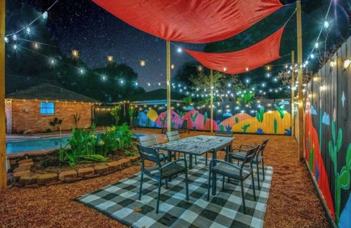Indulge in the stylish industrial mid century setting of this home, offering an cool , retro industrial vibe that resonates with the vibrant culture of the area. A full men cave game room with all type of game tables, an out door cool bar with TV for your family/ group to have a blasting game night or reunion, or simply a treat to your business partners so they can enjoy a millionaire club resort.