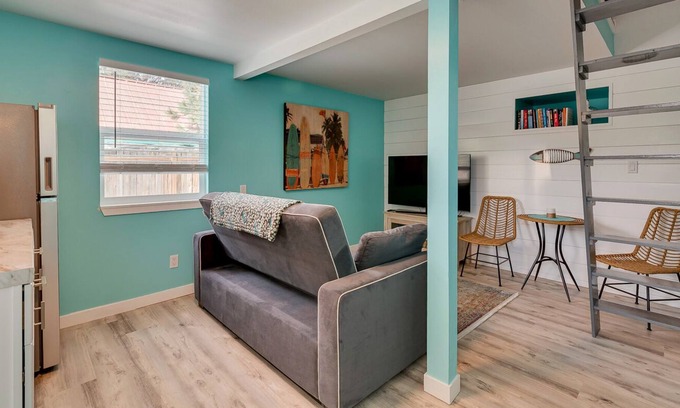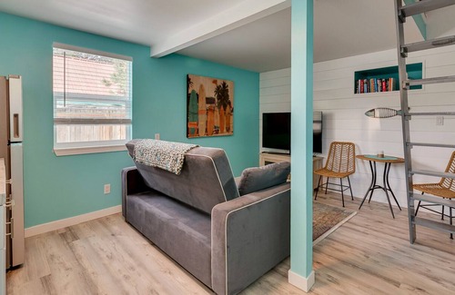 The mini-Manson is a tiny house with living room, bathroom, a mini-kitchen, and a bathroom. It has a fold out sleeper sofa in the living room and a queen bed in the loft bedroom. It also has a nice porch area and a fire pit. Walk to downtown Manson and its shops, restaurants, wineries, and the marina. Slidewaters opens on Memorial Day weekend...!!