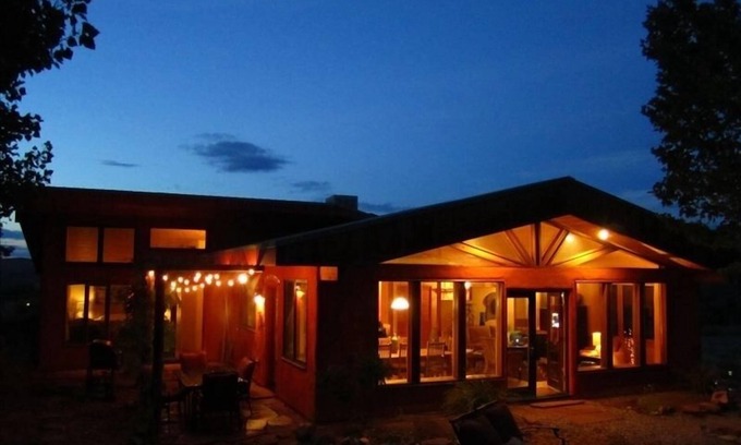 The 360° degree views of the sharp red rock cliffs and La Sals can’t be beat. The home sits on 1.4 acres so there are no neighbors obstructing your views. Enjoy them outside, or inside a house that offers thermal mass cooling and passive solar design. Immerse yourself in Moab's brilliant night sky from the hot tub situated in a quite rural setting. You’re only 3 miles south of downtown so you'll be happy you stayed here.