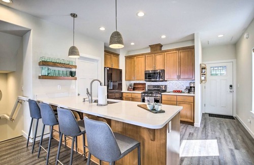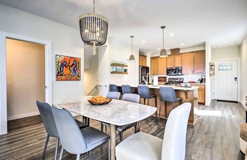 The fully equipped kitchen is a culinary haven, with modern stainless steel appliances, a breakfast bar, and all the essentials for preparing your meals. Whether you're cooking a gourmet dinner or making a quick snack, you'll find everything you need right at your fingertips. The dining table, illuminated by a stunning chandelier, provides a cozy setting for family meals or evening get-togethers.