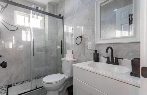 The Modern Retreat 4BR 2BA Near NYC and Airport is located in Bayonne, just 7.1 miles from Ellis Island and 10 miles from New Jersey Performing Arts Center. The property is around 10 miles from Prudential Center, 11 miles from Bloomingdales, and 11 miles from One World Observatory. Free Wifi is available throughout the property and Statue of Liberty is 6.4 miles away. The air-conditioned apartment is composed of 4 separate bedrooms, a fully equipped kitchen with a dishwasher and an oven, and 2 bathrooms. A TV is provided. For added privacy, the accommodation features a private entrance. Guests can also relax in the garden. One World Trade Center is 11 miles from the apartment, while National September 11 Memorial & Museum is 11 miles away. Newark Liberty International Airport is 8.7 miles from the property.