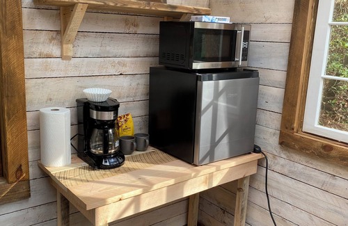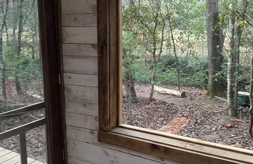 Escape to our tiny creek side cabin for a unique nature experience. Enjoy breathtaking forest views by day, and star gaze by night, through expansive windows and glass roof. Listen to the sounds of creek directly in front of cabin.