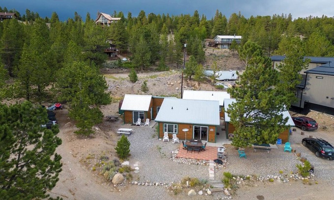 Located at 9,200 feet in Twin Lakes, the cabin offers views of towering 14,000-foot peaks including Mt. Elbert and Mt. Hope. This historic mining town is set within a National Forest and provides immediate access to wilderness trails and alpine waters. A short drive brings you to lakes and the Forebay, while nearby recreation includes rafting on the Arkansas River, fishing its Gold Medal waters, and opportunities for hiking, hunting, and even gold-panning.