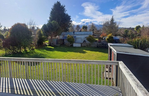 This Rangataua holiday home provides modern amenities, convenience and a large north facing deck. With 3 double bedrooms, The Mountain Pad is perfect for a family getaway. It sleeps 6 adults comfortably, with bunk beds for the kids. There are 2 bedrooms with a Queen bed each, plus a third bedroom fitted with 1 double bed and 1 bunk set. Now with a wood burner in the living area - the house is one of the warmest in Ohakune!